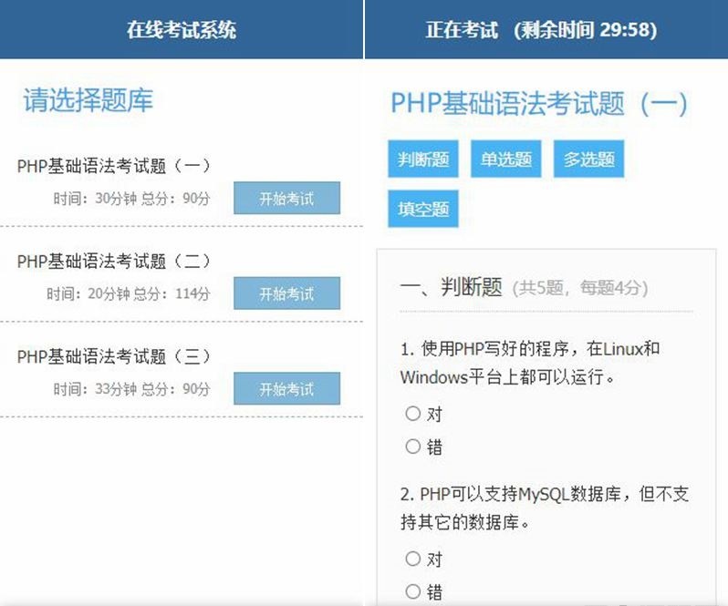 简单的PHP在线考试系统实例源码 无需数据库 无后台管理