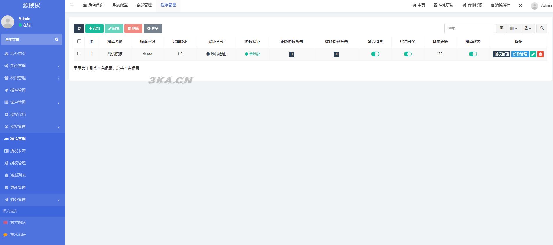 源授权是一款全新架构的授权系统.采用ThinkPHP 5.0开发,内置各种强大的功能,邮件管理,腾讯云短信、阿里云短信等.后台强大简洁,使用方便快捷,支付模块集成易支付功能,前台支持自助购买和操作管理授权!