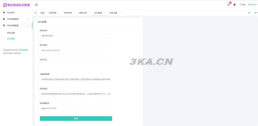 PHP清轩聚合登录平台网站源码,彩虹聚合登录系统二开,后台采用ayuiadmin改版,增加了前台界面、开发文档、SDK文件,后台增加站点配置功能。