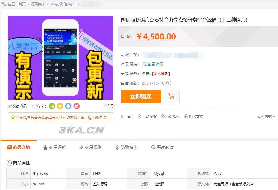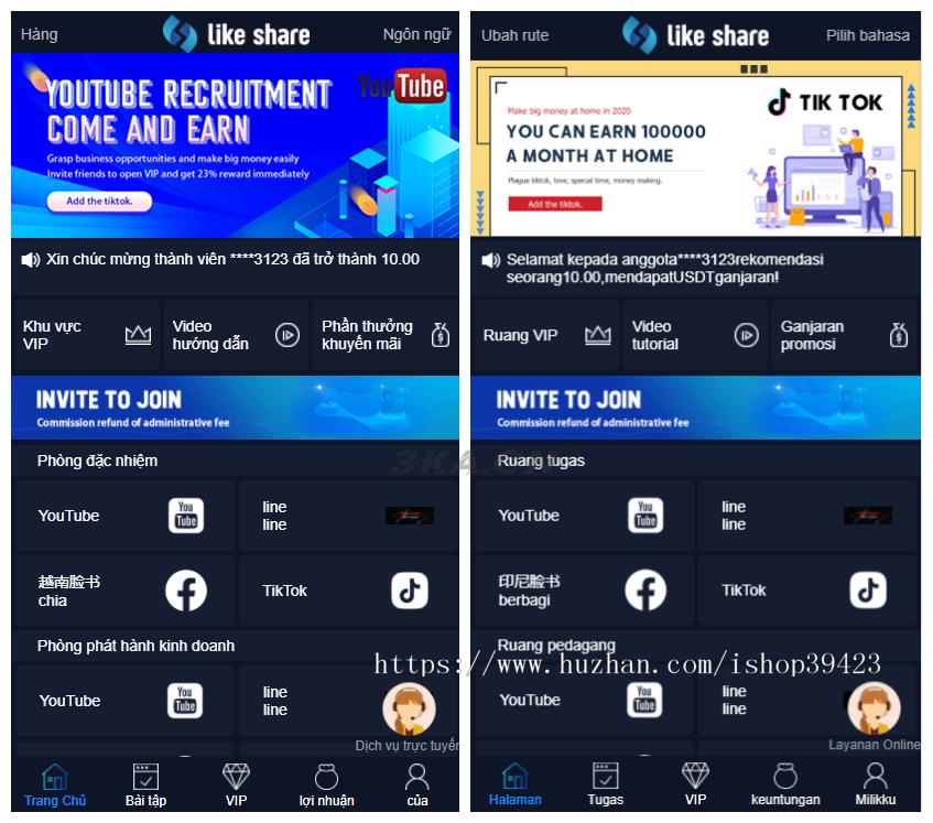 价值4500的国际版多语言点赞抖音分享点赞任务平台源码(十二种语言)