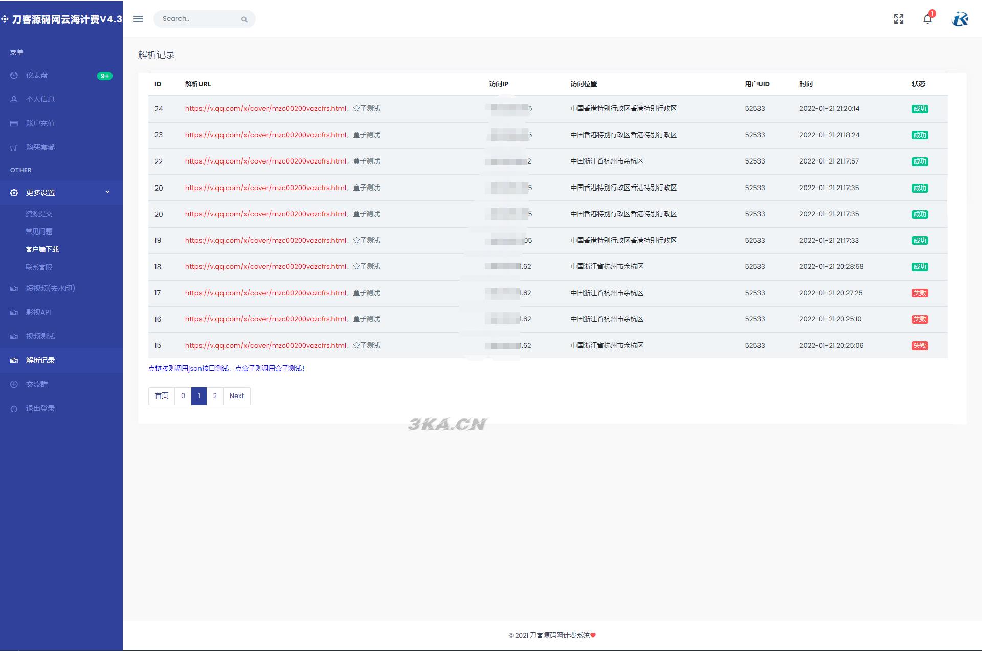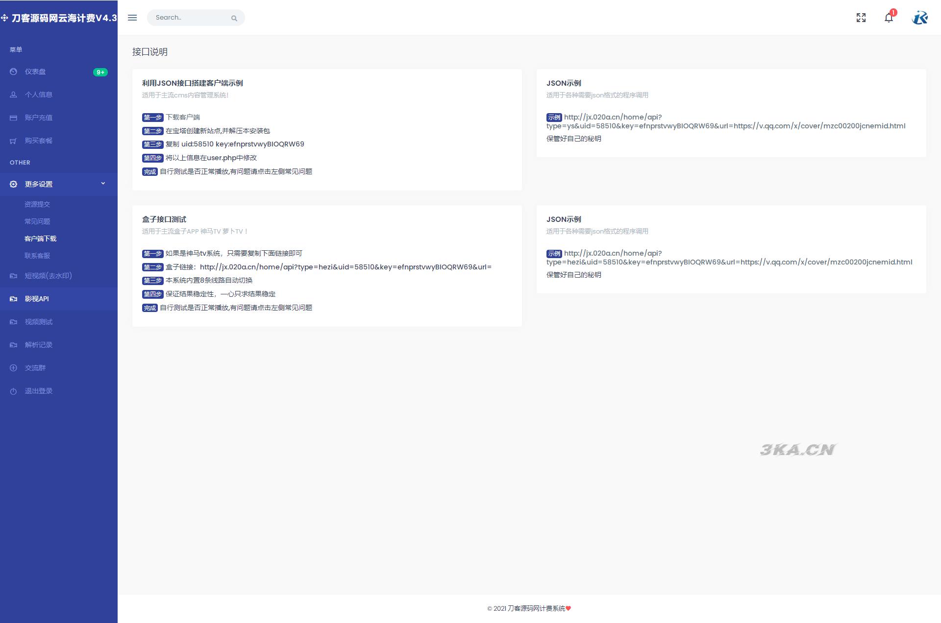 这款源码为云海计费解析系统全网最新版本系统,所有源码均本地化,无任何加密,云海解析计费系统V4.3 是一款 VIP 视频计费解析系统,源码只需要在后台设置 json 视频解析接口,设置好以后即可完成视频解析功能,本程序功能强大,v4.3 最新版本为是完整全套系统!