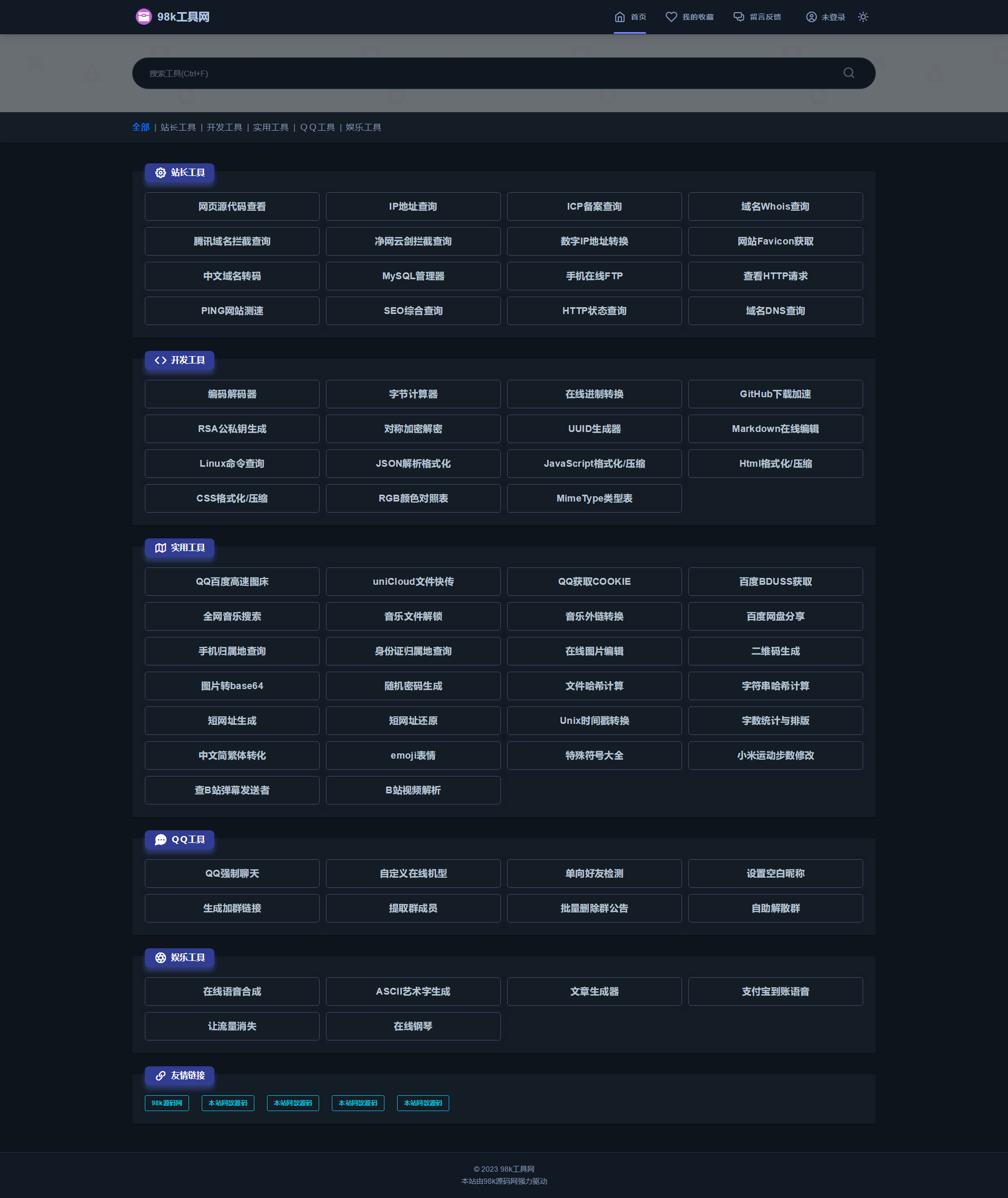全新UI彩虹站长在线工具箱系统源码下载 全开源版本