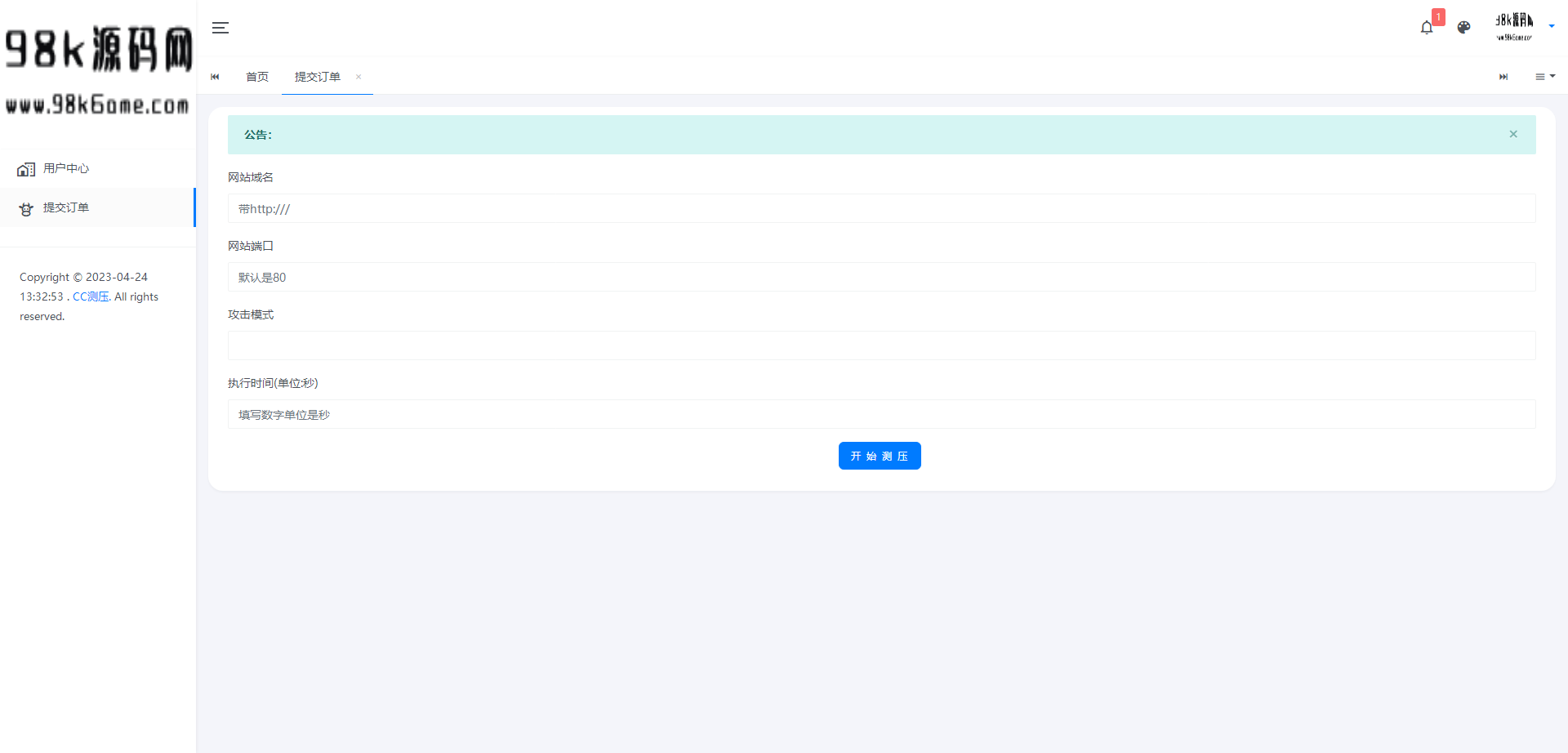 最新网站服务器CC压力测试系统源码 前后端全开源