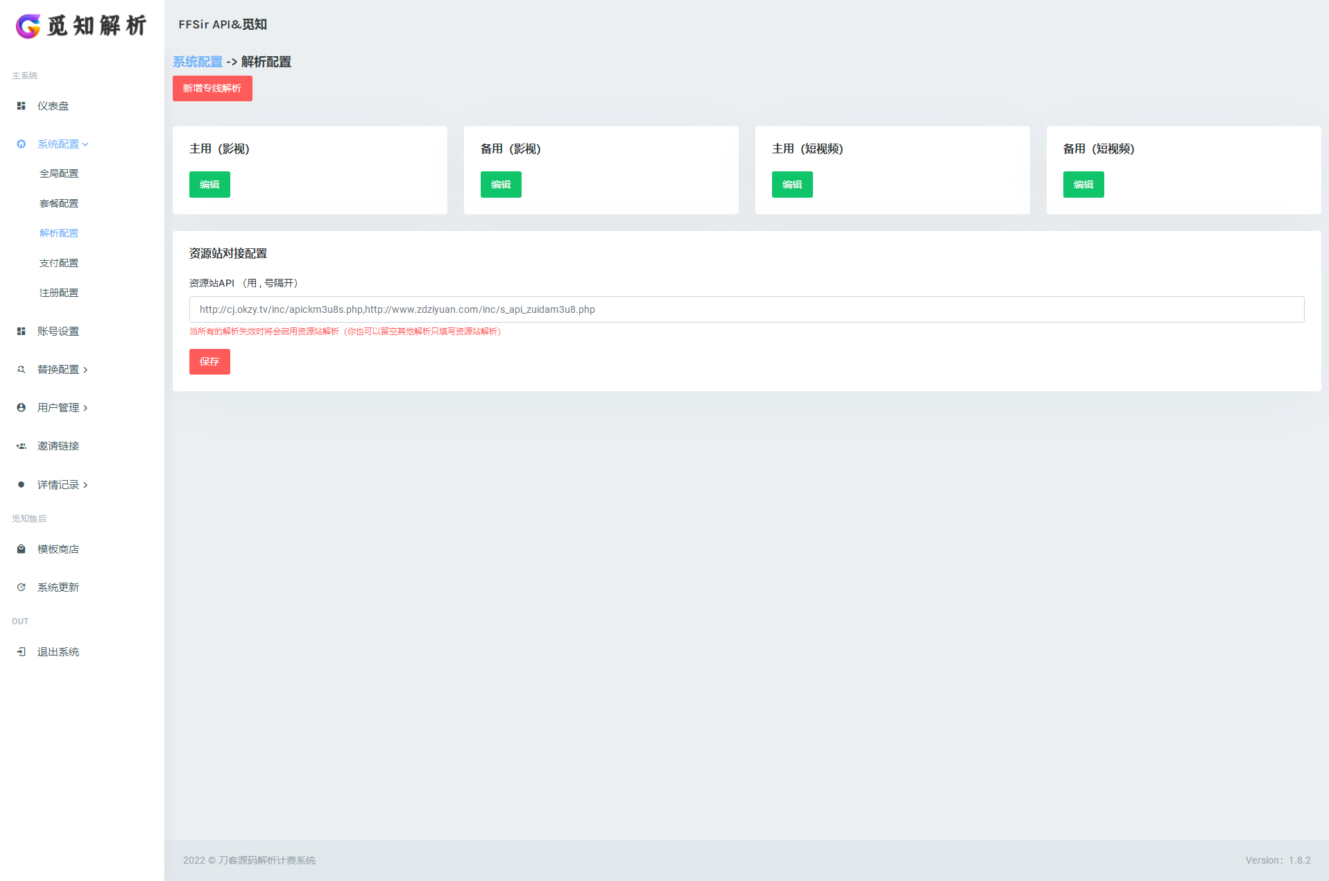 最新觅知扶风视频解析计费系统源码V1.8.2 免授权优化版 附教程