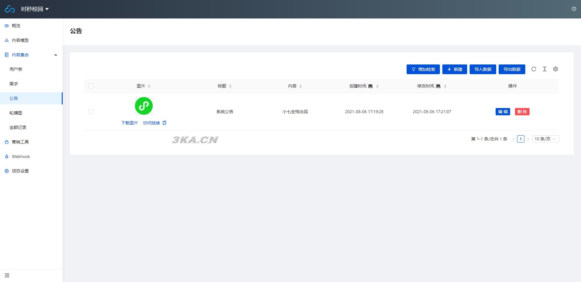 开通云开发服务,点击'云开发_更多_内容管理'开通云开发CMS管理后台