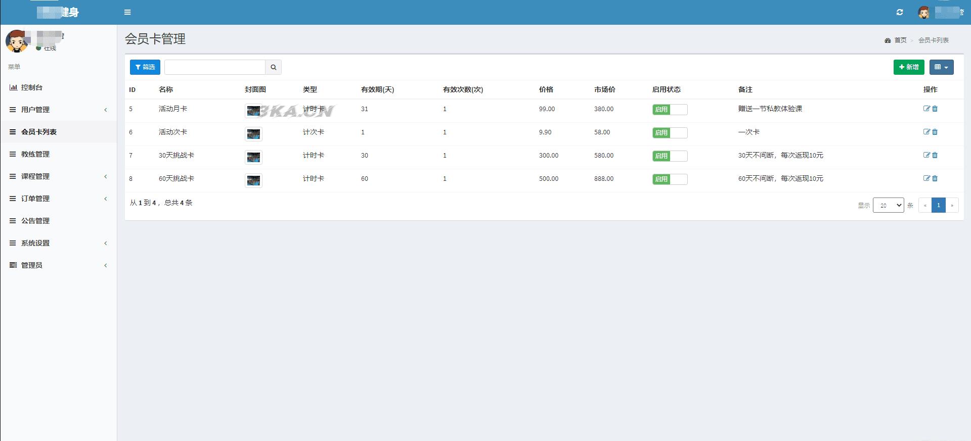 进入后台,首先到 系统设置->商户管理->驷动健身->编辑,配置 小程序id、商户id、密钥等相关信息,否则不可用
