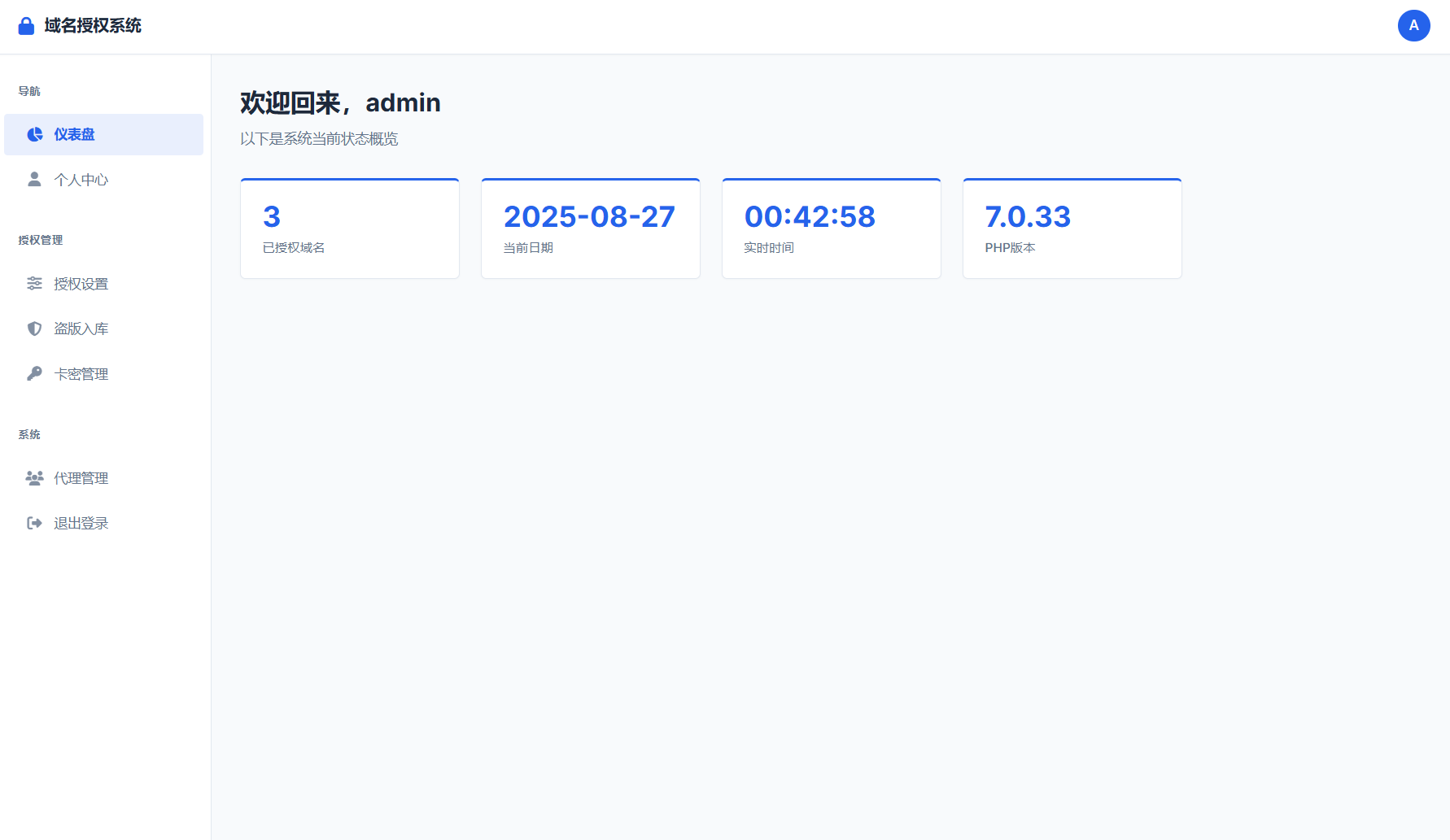 测试了一下,里面有一个文件有加密,其他的都是开源的,不影响二开,功能也满足日常所需,前端挺简洁美观,支持查询授权、卡密兑换授权、程序下载,更换授权等,自适应手机/电脑端