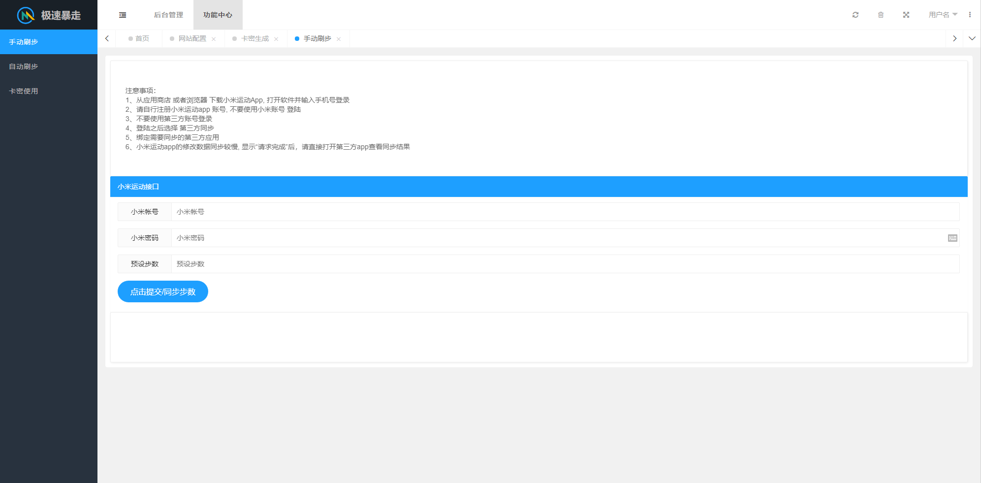 最新急速暴走小米运动自动刷步卡密版PHP源码