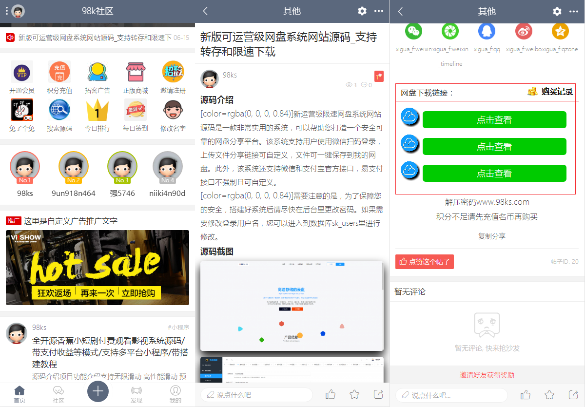 最新98k论坛社区系统网站源码 在线商城,知识付费下载,拓客广告等