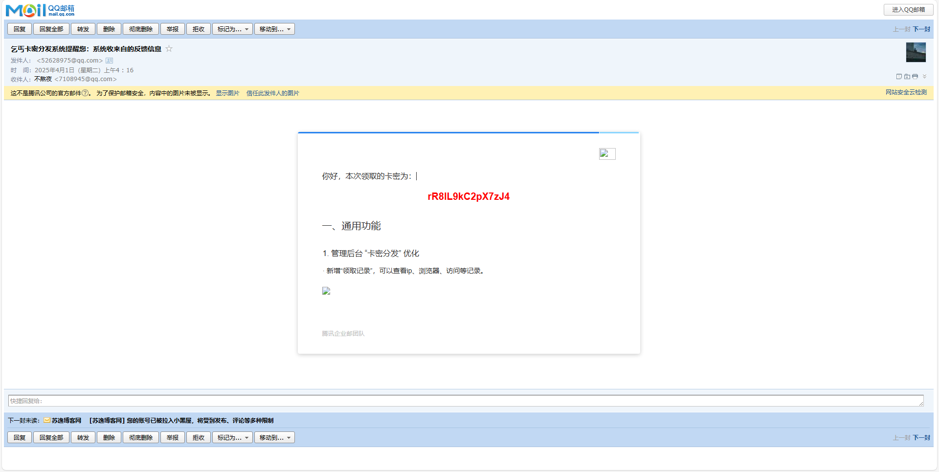 7.卡密通过邮件形式发送到对方邮箱,邮件模板可以自己进行替换
