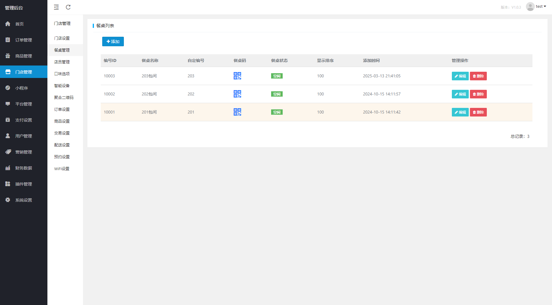 8.门店管理:餐桌,店员,口味,云设备,二维码,wifi,预约订桌等管理。