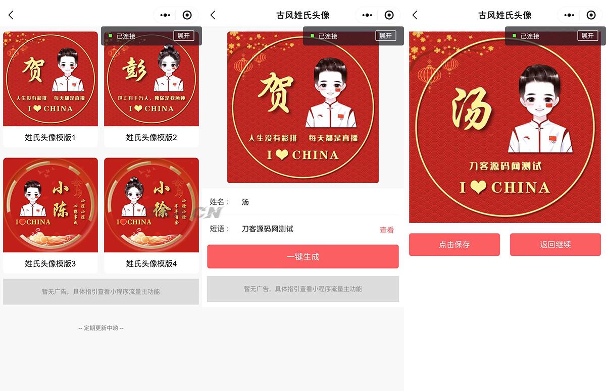姓氏头像框多模板制作微信小程序源码下载,复古等等超多模板支持流量主