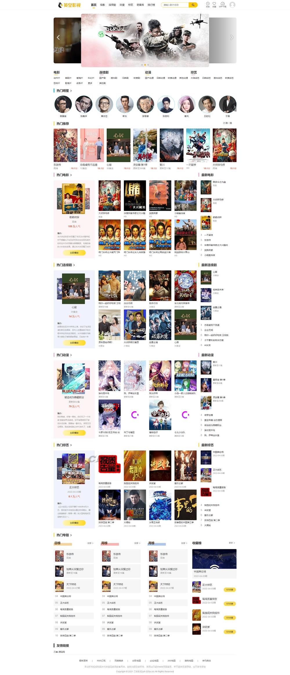 最新英皇cms影视网站系统源码_多种模板_自带采集_支持APP_亲测