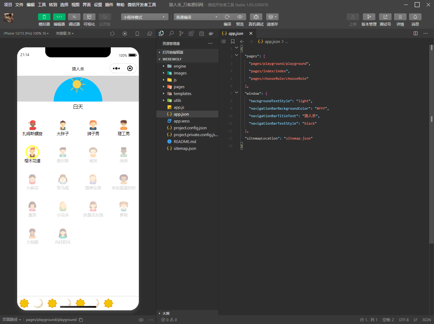 狼人杀休闲游戏微信小程序模板源码/微信小游戏源码