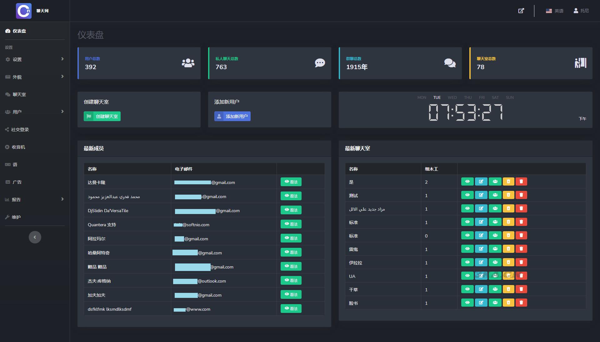 外一款多用户聊天室源码,程序支持同时创建多个聊天室,全站响应式完美适应pc和移动设备,界面的设计现代且用户友好,将使您的网站或应用无缝地成为功能丰富的社区和社交平台。程序内置英语,可轻松翻译为多种语言。