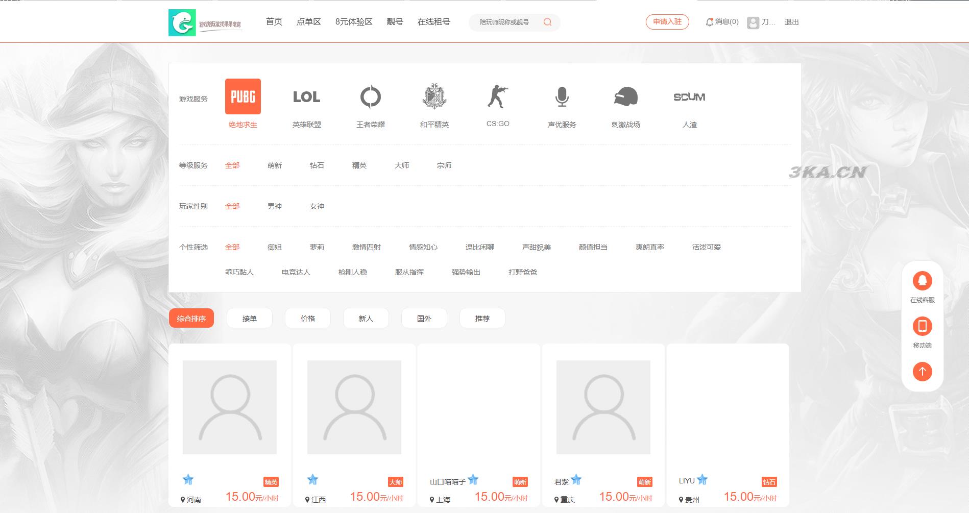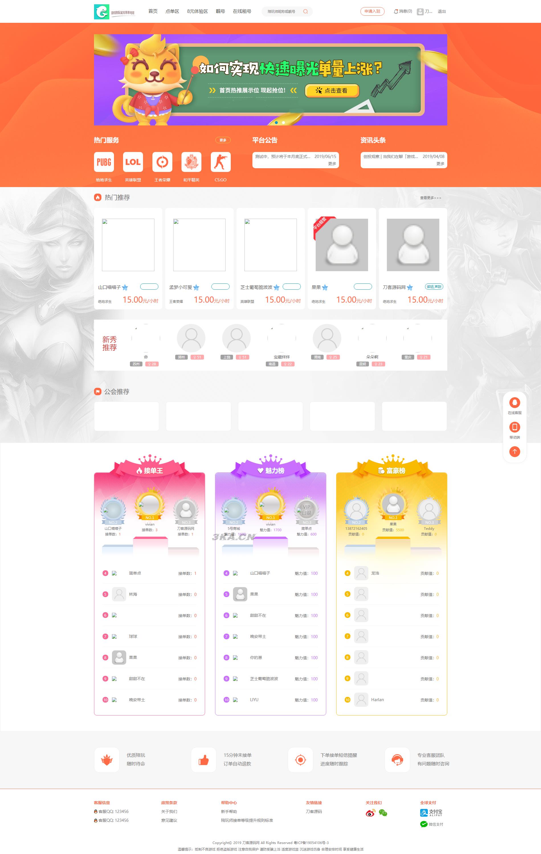 游戏陪玩系统/在线租号系统/小姐姐陪玩任务系统/网游主播任务威客平台源码/声优线上游戏任务系统网站源码_站长亲测
