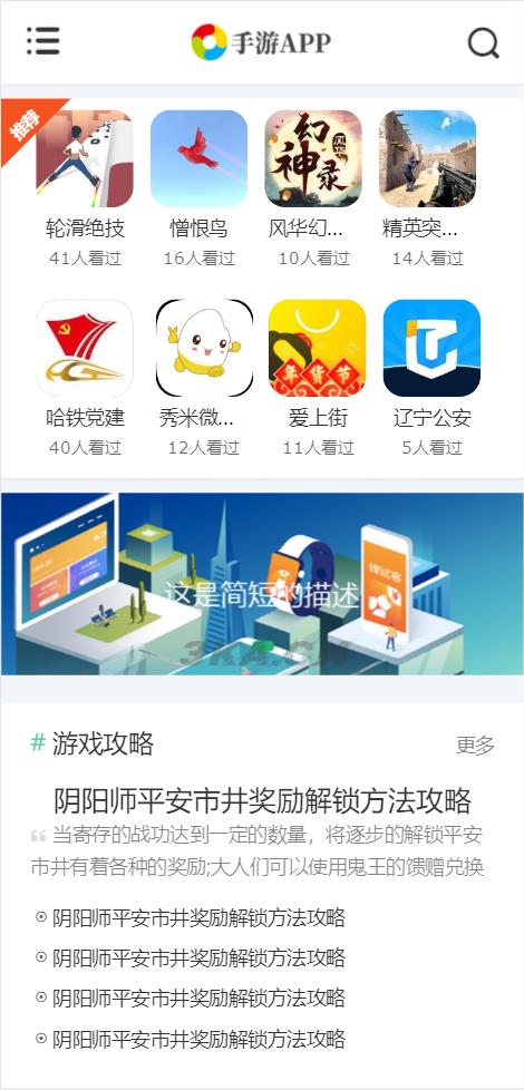 pbootCMS内核开发的网站模板,该模板适用于手机APP网站、游戏软件网站等企业,当然其他行业也可以做,只需要把文字图片换成其他行业的即可;