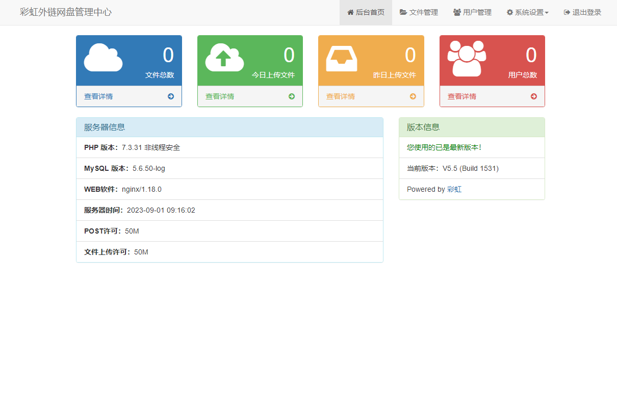 全新UI彩虹外链网盘系统源码/前后端美化模板/整站+模版文件