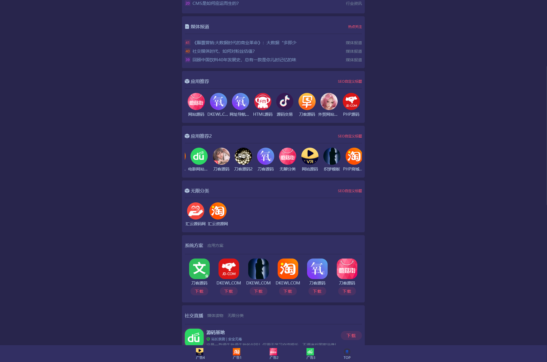 新版功能:无限模块,自定义、应用tab、文章、网址、幻灯所有模块均可无限复制添加,就怕你内容不够多!新增文章专题页面、常规空白页面模板!
