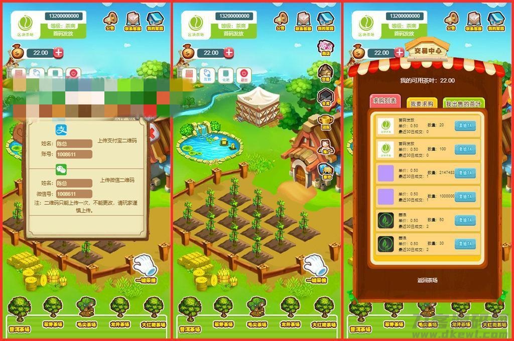 区块链模式茶场游戏源码带商城 虚拟农场+在线商城 带系统交易,茶叶种植系统,带交易大厅,带游戏玩家游戏获得的茶叶可以与商城结合的系统