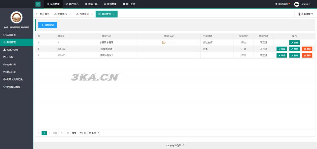 可以在一套直播间系统中开多个相互独立的房间,可以将房间加密,单独设置视频和分析师,可以分别对不同的房间设置不同的进场图片,背景和QQ客服。