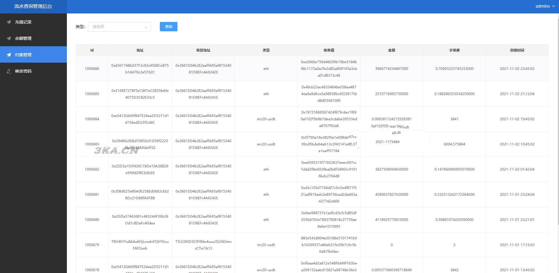 二开版流水查询系统/虚拟币查询多方式提币系统源码下载
