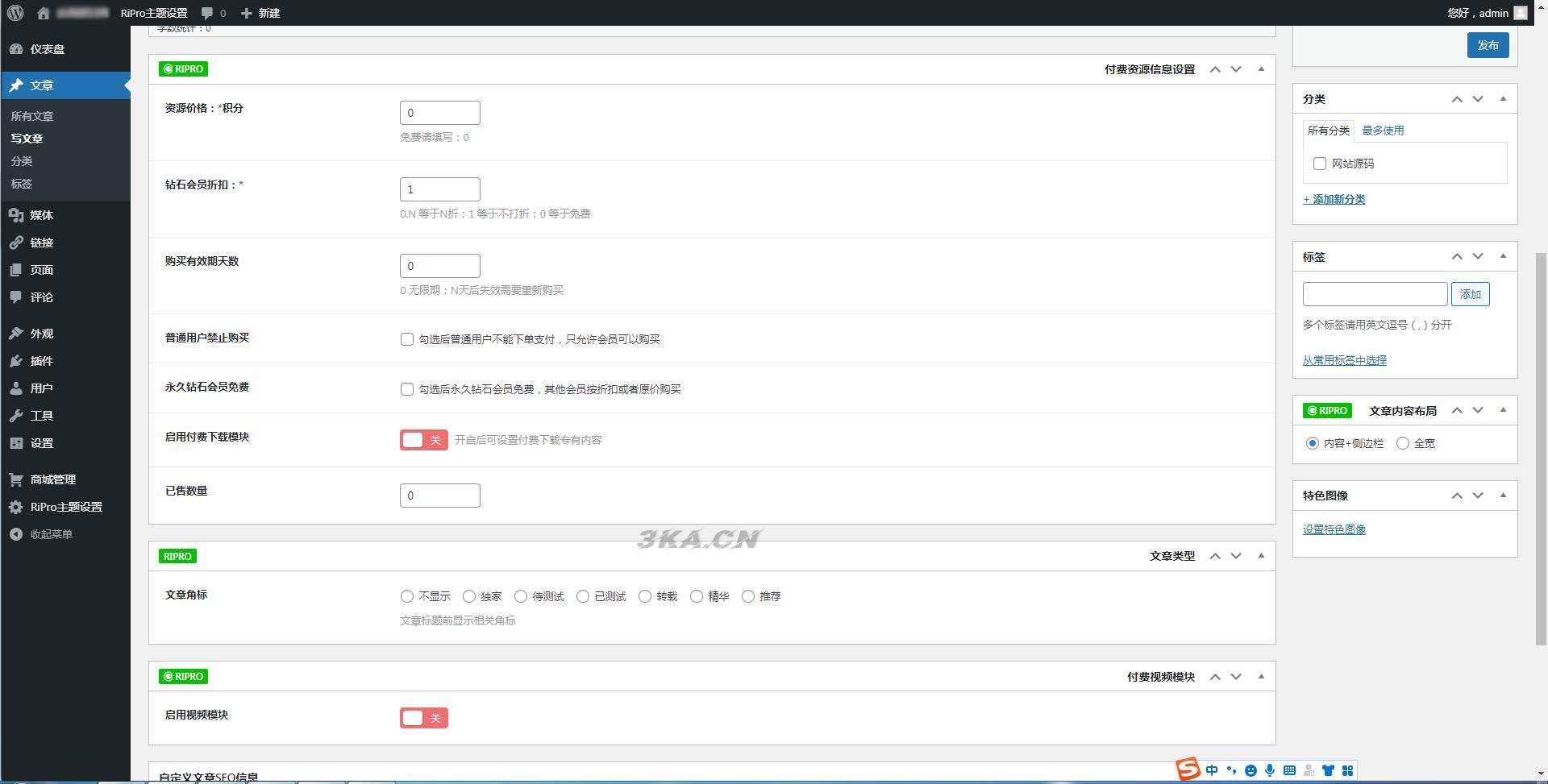 ripro子主题eeesucai-child集成后台美化包(适用于设计素材站+资源下载站等)【站长亲测】