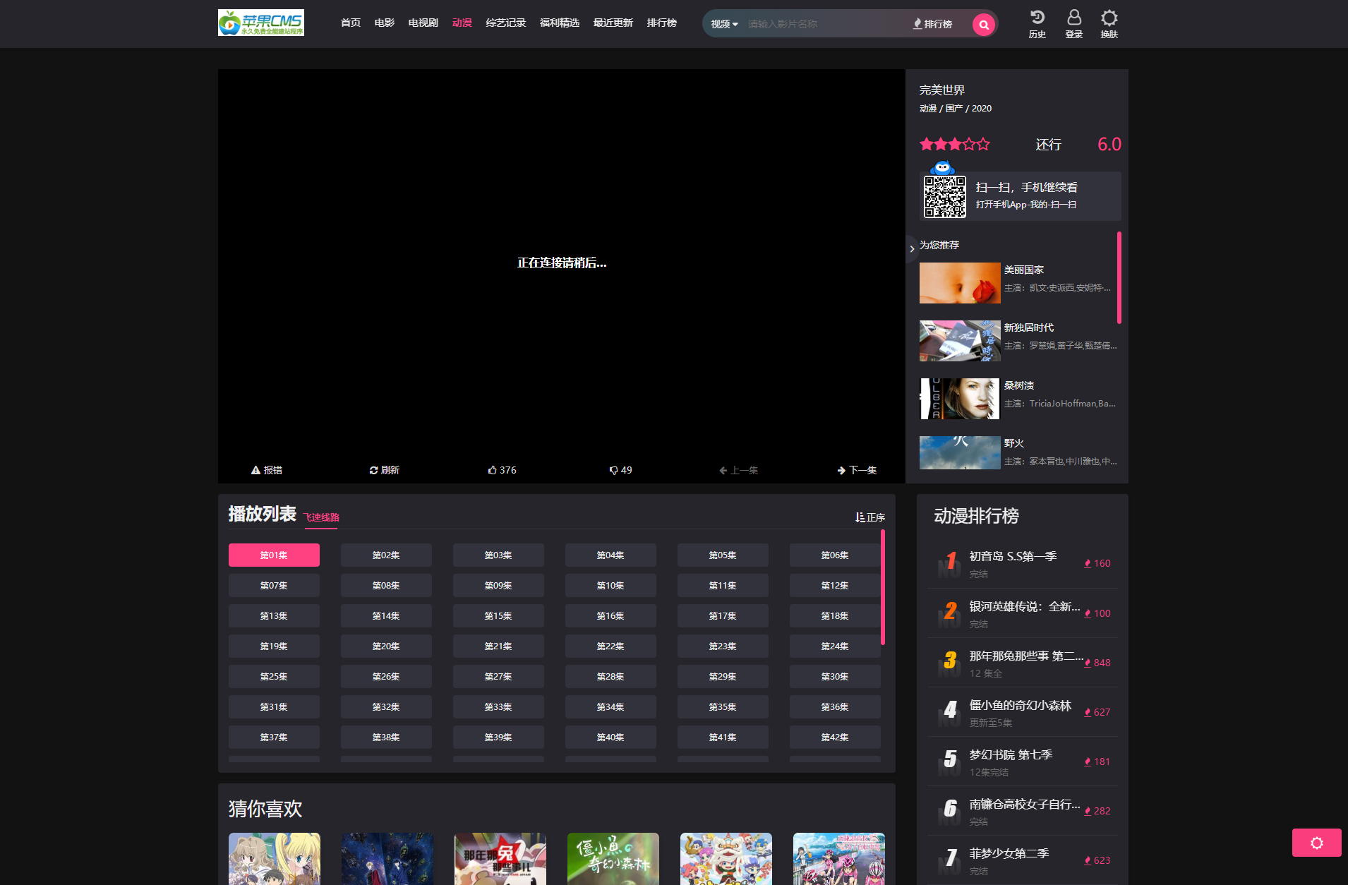 全新仿短视影视模版源码 PC+H5自适应 明暗双皮肤 苹果CMS系统