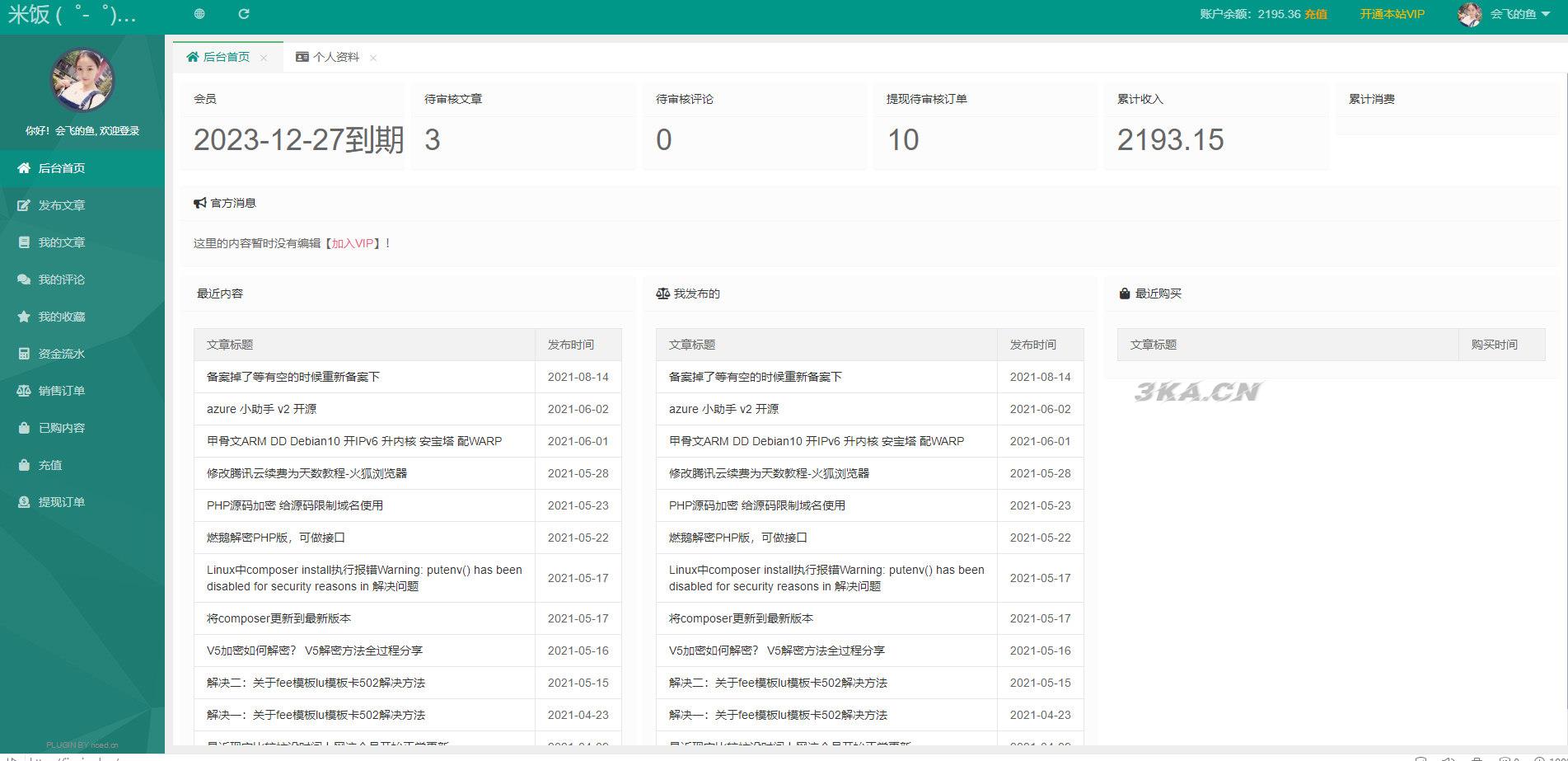 这UserEMlog去年作者已经在开始弄了,但是种种原因被迫停止了项目,期初还有人叫作者开源个免费版的,之前是不打算开源的,但是现在由于现在EMlog这,我还是开源了吧。目前只实现了一些基础功能,详情看下方介绍简介这是一款专为emlog写的一个独立会员中心(UserEmlog),其实是闲着蛋疼而弄的!UserEmlog基于emlog6.0.1老司机修改版开发的,暂时不知道支持不支持其他版本。