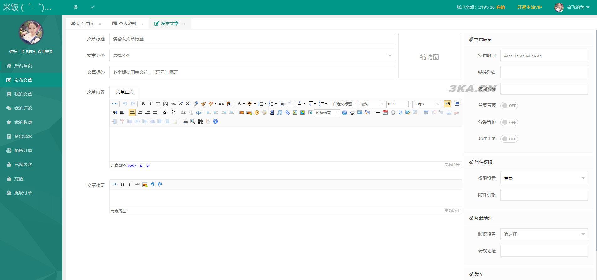 发布文章:强大的发布文章功能,但是部分功能需要模板的支持