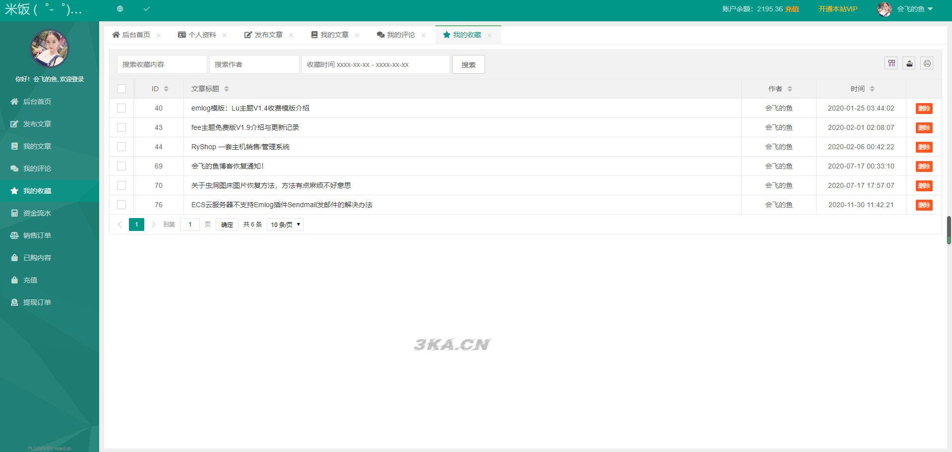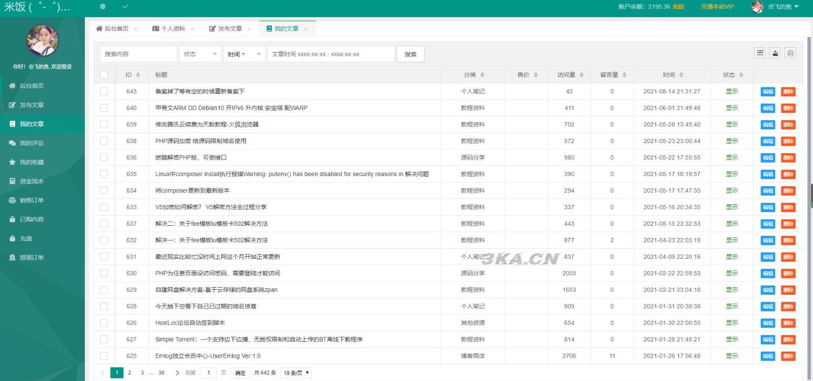 文章管理:可管理自己已发布的文章