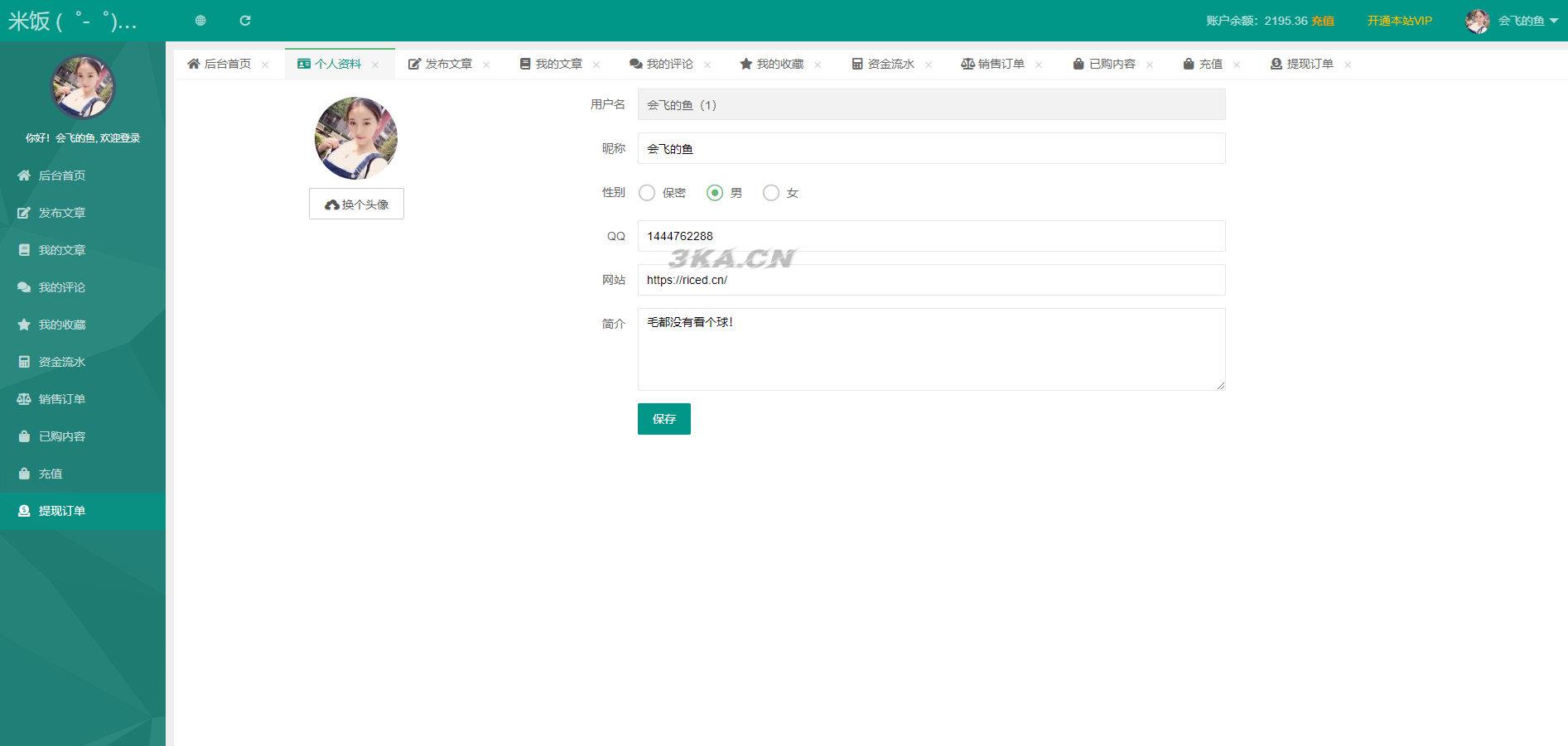 资料修改:可以自主修改资料头像等
