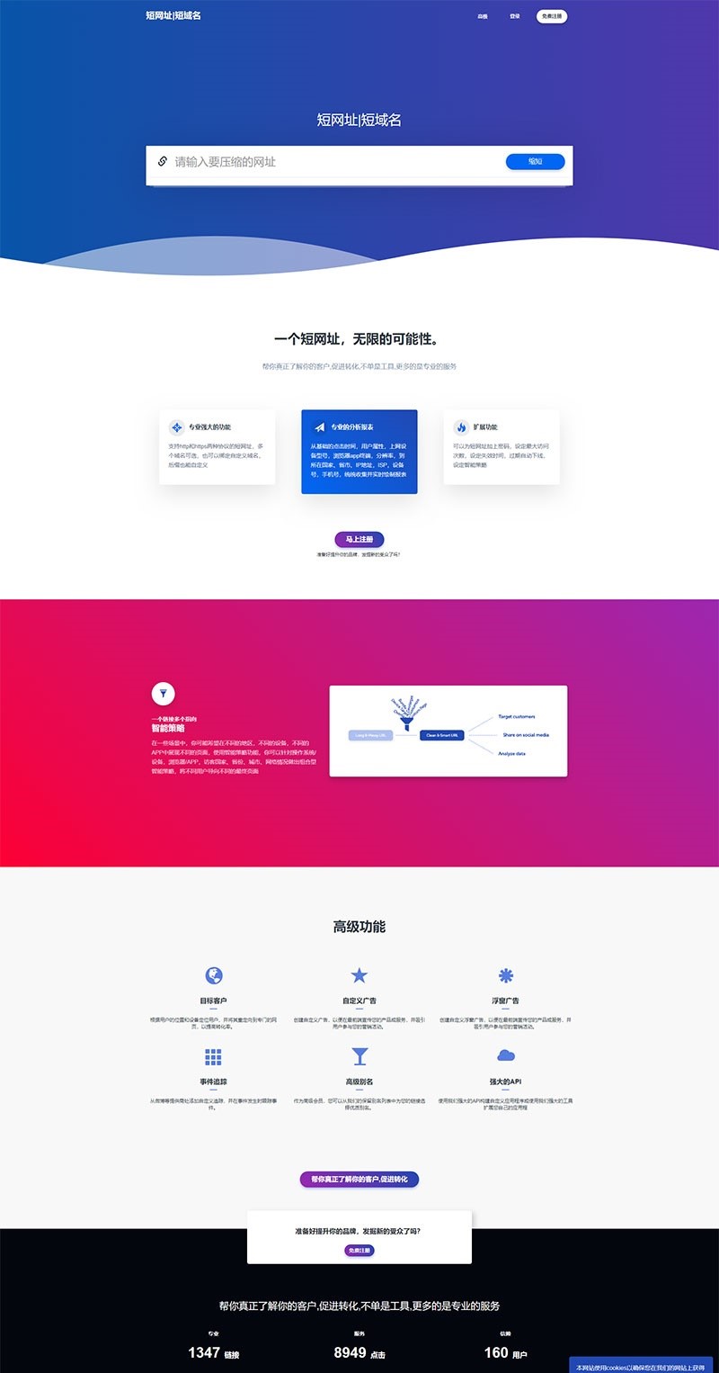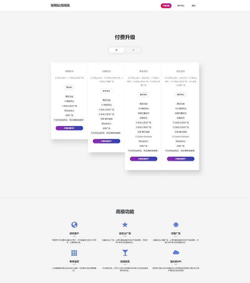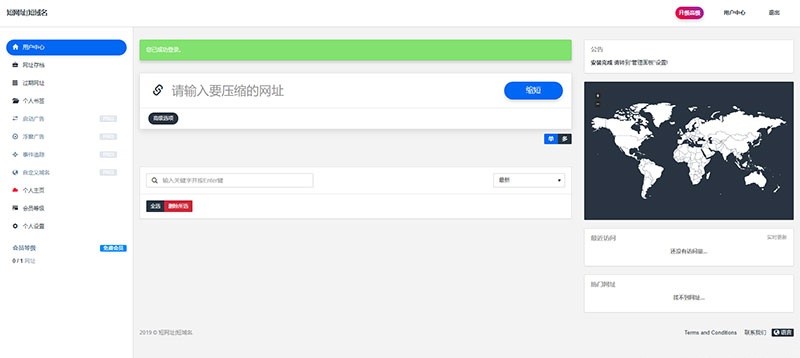 专业的短网址源码,完整的后台管理、功能齐全的用户面板、用户系统、社交分享、短网址统计、短网址自定义、多国语言支持、社交分享以及API系统等。