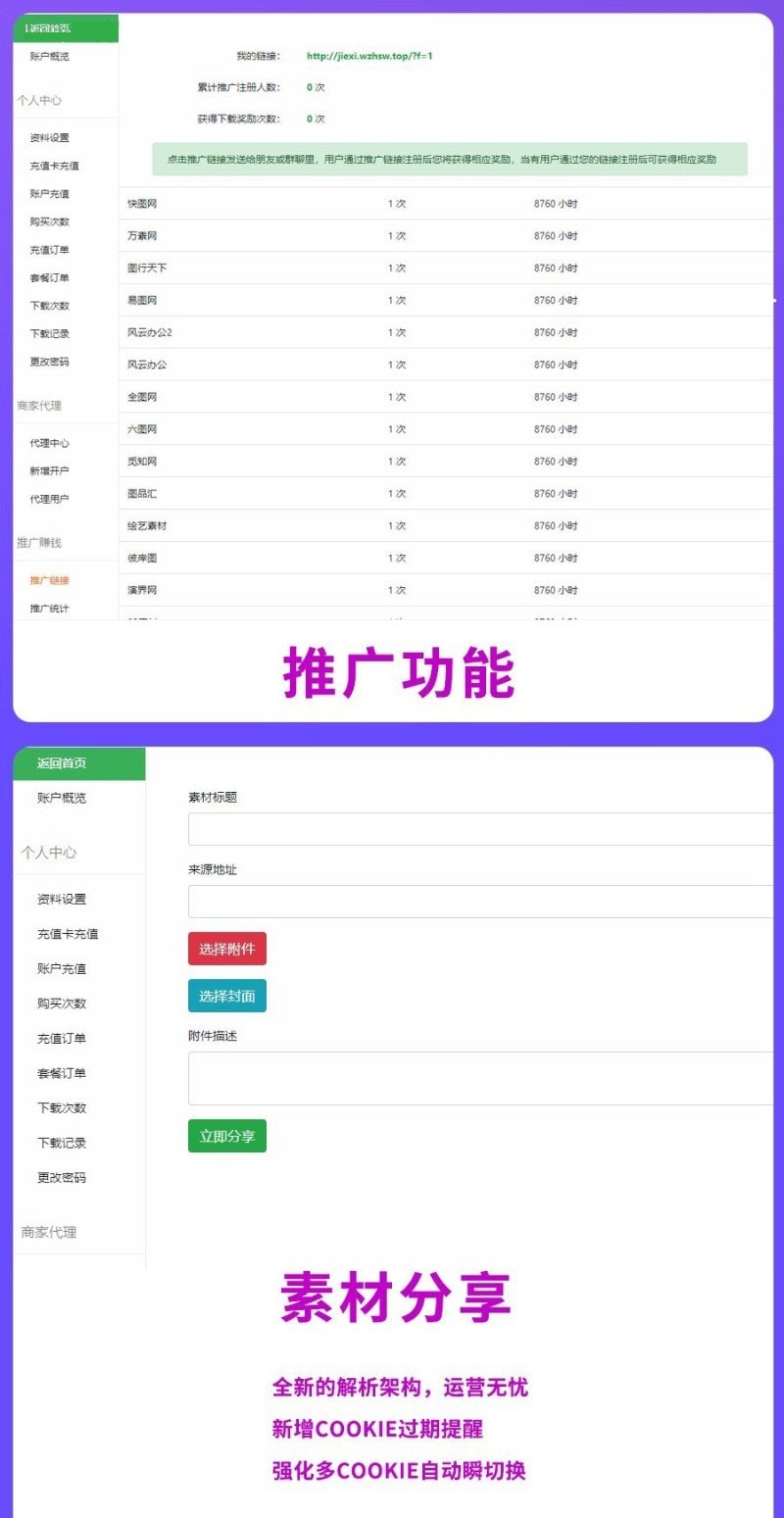 答:素材解析是您开通一个VIP然后开会员卖给别人共享解析,就相当于你开了一个会员给了N个人用,收他们的钱。如果这些素材站真的能免费解析,那么他们就喝西北风了。