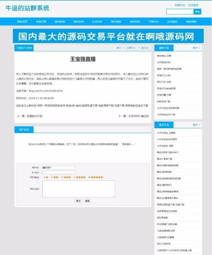 也可以当做站群的源程序使用。
